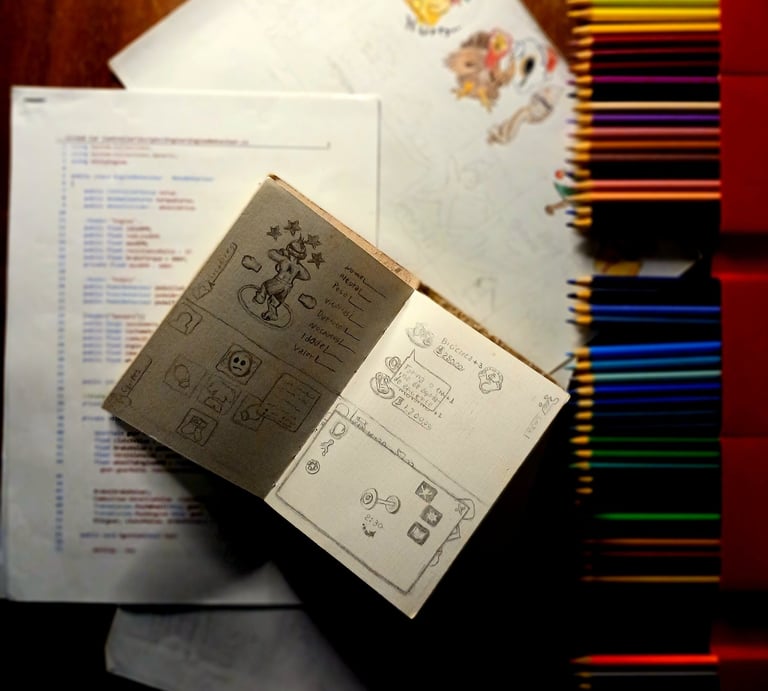 Colocamos ideias autênticas no papel, trabalhando o game design e level design.